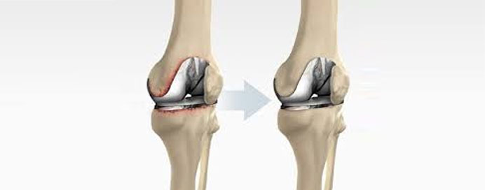 - Involves removal of the old knee prosthesis and preparation of bone for a new implant.