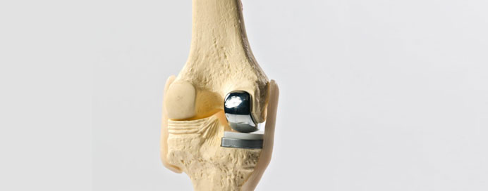 - A customized metal and plastic implant is placed in the affected compartment